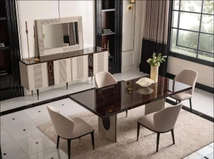 GÖZ YORMAYAN HATLARIYLA DİNGİN VE DENGELİ BİR ATMOSFER YARATAN AQUA YEMEK ODASI , SİZLERE ZARİFLİĞİ VE KALİTEYİ SUNUYOR ….